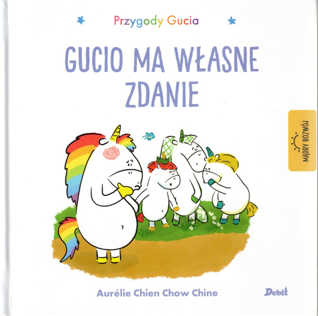 Tego ranka w szkole Gucio zauważa, że jego przyjaciele naśmiewają się z koleżanki. On też się śmieje, ale w głębi duszy wie, że to nie jest zabawne. Gucio zdaje sobie sprawę, że często naśmiewamy się z tego, czego nie znamy i uświadamia sobie, że warto mieć własne zdanie! Seria dla małych fanów jednorożca Gucia, która uczy, jak mądrze się rozwijać. W każdym tomie serii jedna przygoda małego jednorożca oraz rada, jak rozwiązywać różne problemy.